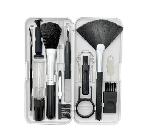 بسیار کاربردی حمل آسان دارای جعبه نگهدارنده مناسب برای تمیز کردن دستگاه هایی مانند گوشی موبایل، ایرپاد، کیبورد، دوربین، مانیتور و کنسول های بازی قابل استفاده به عنوان هولدر موبایل دارای سوزن سیمکارت دارای دو گیره خارج کننده دکمه های کیبورد و یک پنس درب جعبه از جنس میکروفیبر برای تمیز کردن صفحه نمایش گوشی دارای قلم لنز از جنس کربن دارای سه نوع برس موی زبر کوچک و دو برس مویی بزرگ دارای برس تمیز کننده سوراخ دارای کیت تمیز کننده ایرپاد دارای اسپری تمیز کننده صفحه نمایش